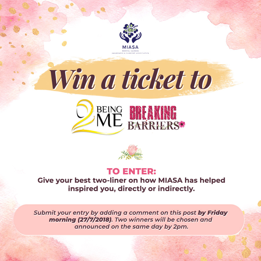 BeingME conference is coming up in a few more days, and it’s time for a giveaway! We’ll be giving two free tickets to this conference. All you have to do is write your best two-liners on how MIASA has helped inspired you, directly or indirectly. Isn’t that easy?
