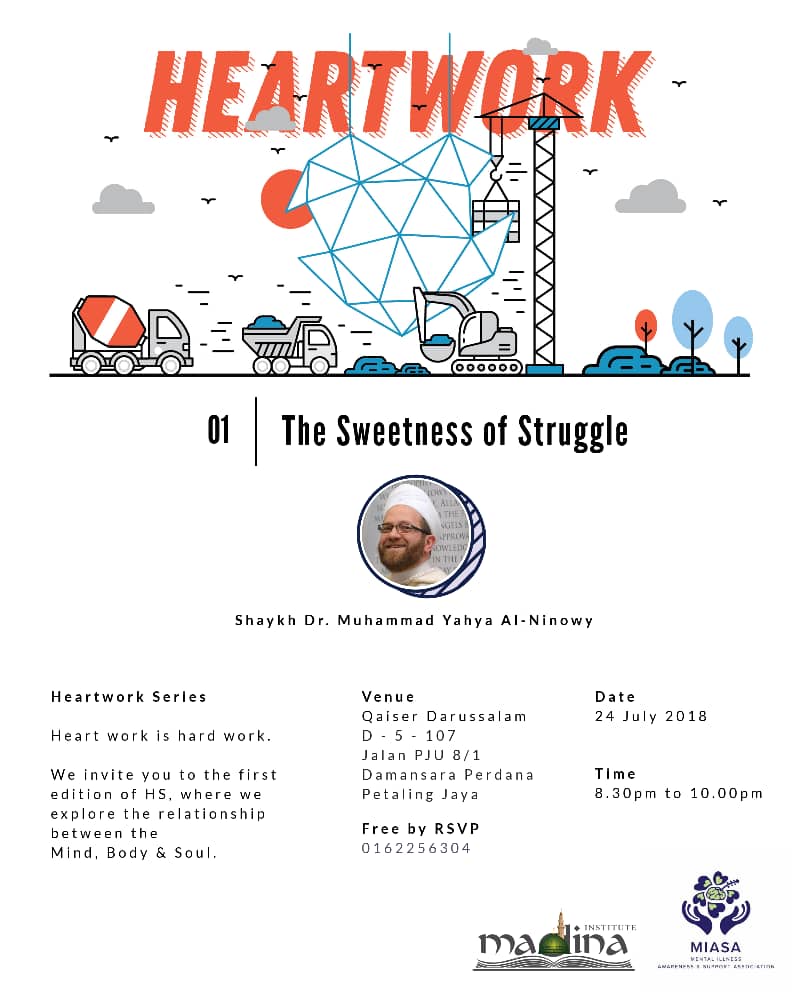 Alhamdulillah, the first round of Heartwork series was successfully held on 24/7/2018. Shaykh Muhammad bin Yahya al-Ninowy delivered a very beautiful lecture on mental health problems from the perspective of Islam.