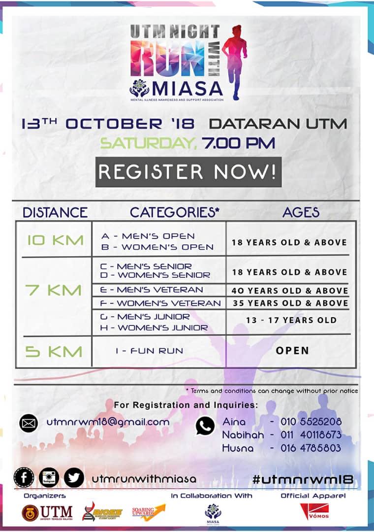 We’re proud to announce that we are collaborating with Universiti Teknologi Malaysia (UTM) to bring you our very first running event – UTM Night Run with MIASA!