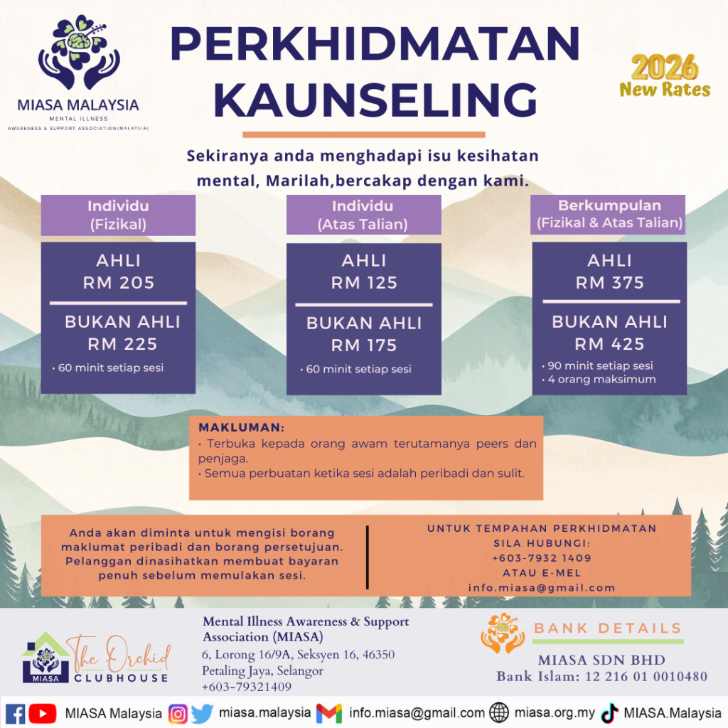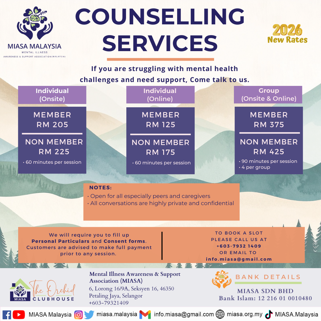 MIASA Malaysia provides counselling services to anyone who is struggling with their mental health or just needs someone to talk to.
